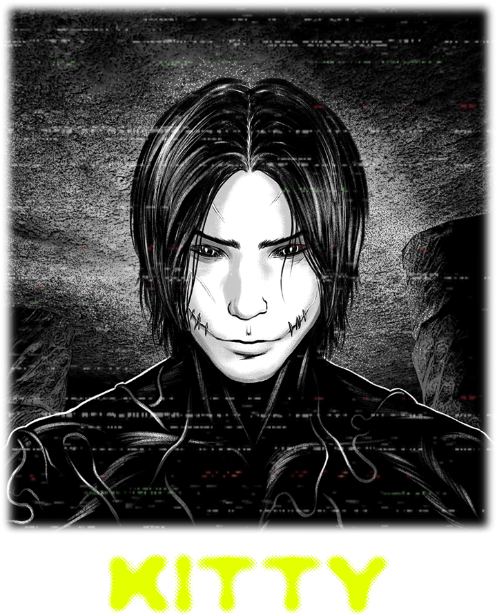 Driven by vengeance and consumed by darkness, Kitty is a relentless force of destruction, fueled by a burning desire to eradicate the Black Dog Triad.